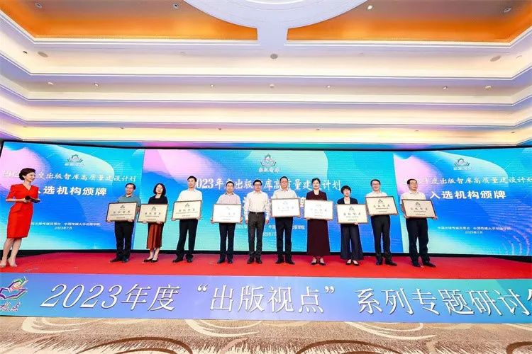 2023年度出版智库高质量建设计划入选机构授牌仪式由中国出版传媒商报社、中国传媒大学出版学院联合举办,中宣部出版局局长冯士新、中国新闻出版研究院院长魏玉山、中国传媒大学校长张树庭等出席活动。
